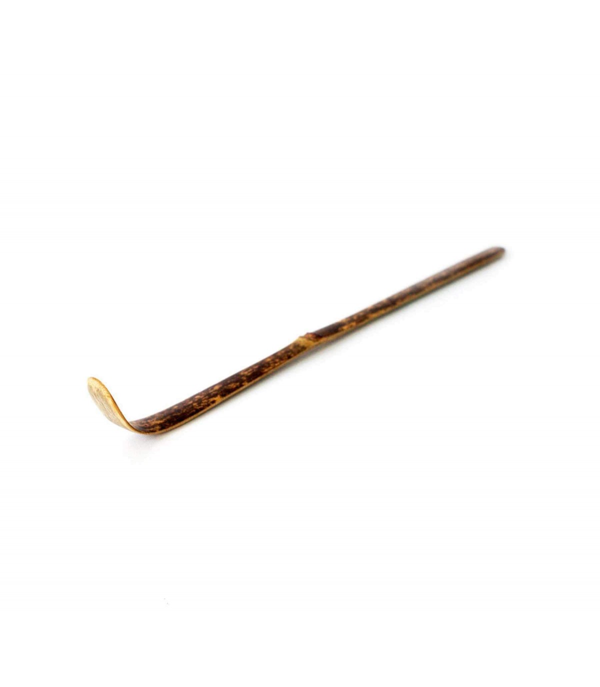 Esta cuchara es la empleada en la ceremonia Japonesa para poner el té Matcha en el cuenco antes de añadir el agua. En esta ocasión, mediante calor, se conseguido el color oscuro que le da ese toque original y queda perfecta como compañera de nuestro batidor de mando largo. Es importante que esta cuchara en concreto, no entre en contacto con el agua para que mantenga su evocador color oscuro.