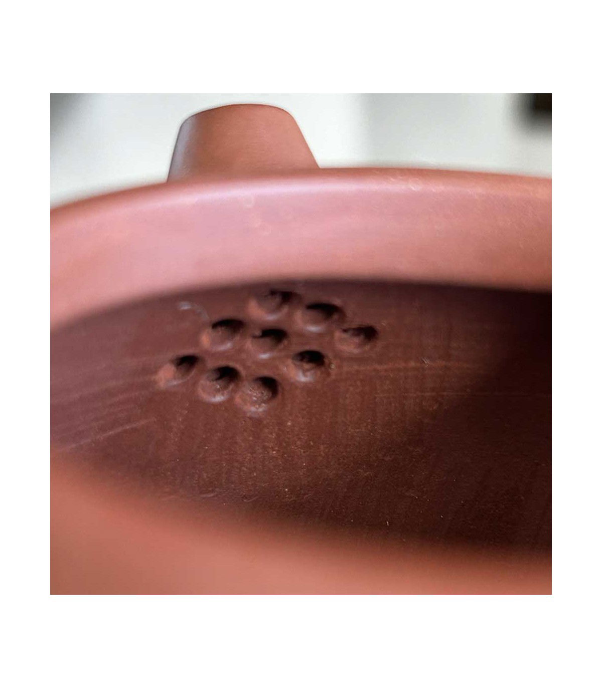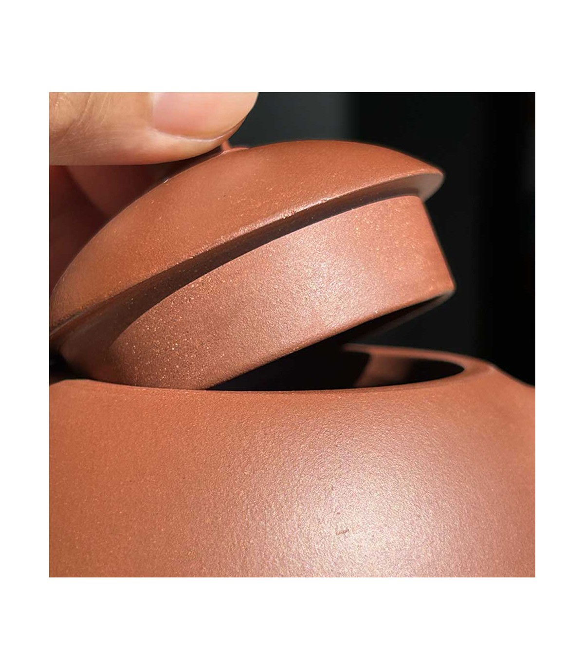 El material utilizado para esta tetera es Zhuni, una arcilla especial de color amarillo-rojizo, obtenida de las montañas al noroeste de Yixing. Tras el proceso de cocción, esta arcilla adquiere unos tonos naranja-rojizos distintivos, que otorgan a la tetera un acabado elegante y cálido. La Zhuni es famosa por su alta porosidad, lo que permite a la tetera “recordar” las infusiones previas, intensificando el sabor de cada taza con el tiempo. Para aprovechar esta característica, se recomienda dedicar la tetera a un solo tipo de té, potenciando su perfil de sabor de manera única.