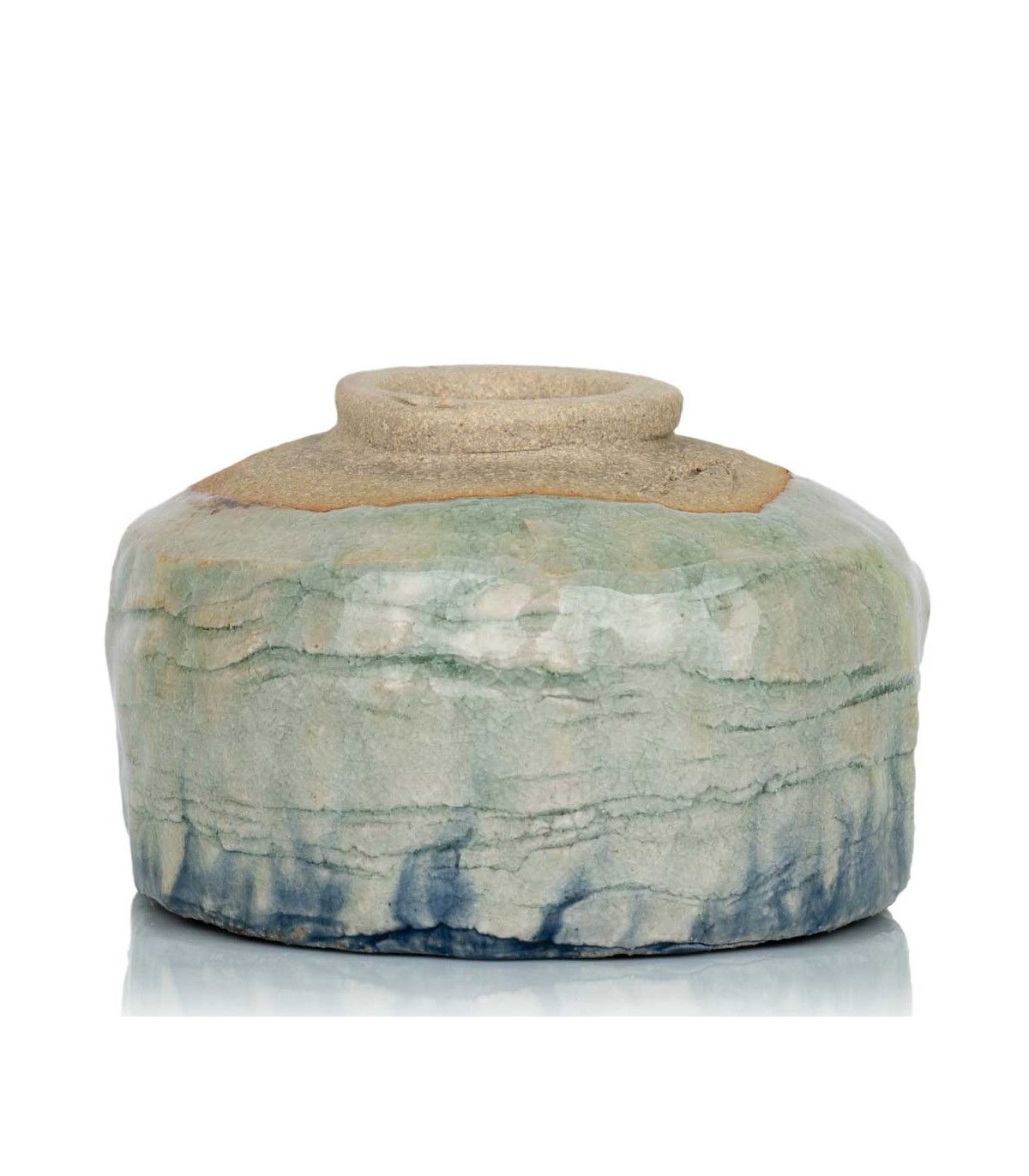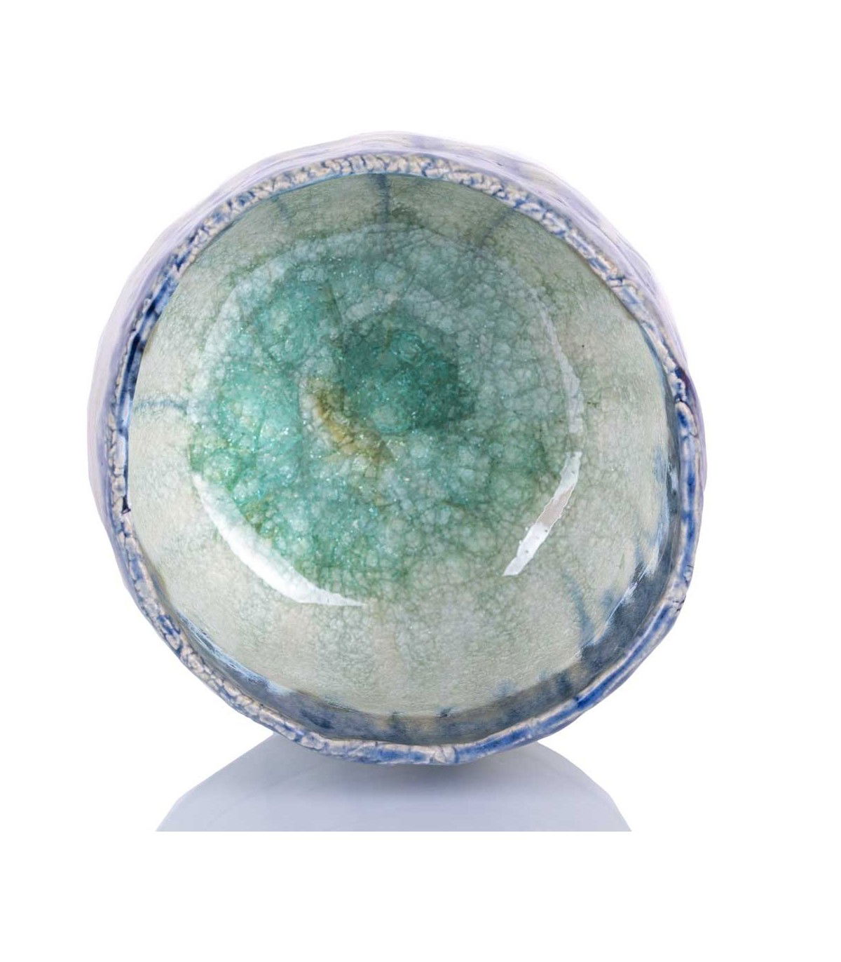 Sus colores turquesa, su forma irregular y la decoración que la aportan las grietas que aparecen por toda la arcilla, hacen de este recipiente algo perfecto para resaltar el verde intenso del mejor de nuestros tés Matcha.