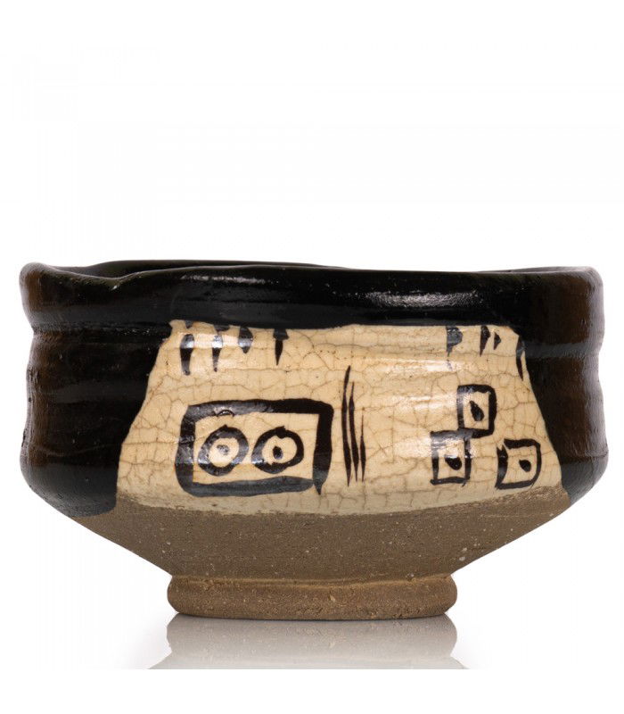 En 2022, KATO Juunidai creó una serie limitada de 20 Chawans Kuro Oribe, cada uno con un diseño y efecto de fuego único, firmados personalmente por el artista. La pieza resalta por su interior glaseado en negro y un exterior en tonos beige, con patrones geométricos característicos. Este Chawan no solo es una obra de arte, sino un pedazo de historia, conectándote con la rica tradición de la cerámica japonesa y el legado de Furuta Oribe.