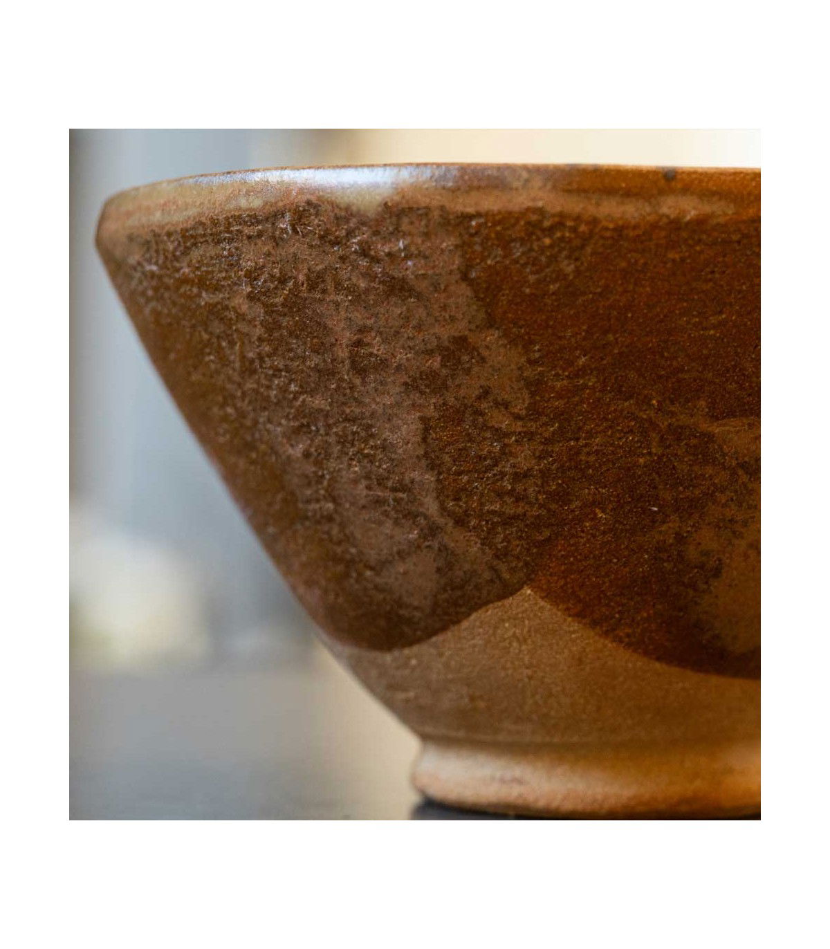 El material elegido, una arcilla refractaria de alta resistencia, permite una cocción que potencia la textura y la firmeza, ofreciendo una base robusta y cálida. Cada cuenco ha sido esmaltado en atmósfera de oxidación, logrando un acabado satinado en tonos crema, salpicado sutilmente de motas negras que evocan la quietud de una piedra antigua bañada por la bruma. El interior revela matices que invitan a contemplar el color vibrante del matcha, convirtiendo el acto de beber en un ritual estético.