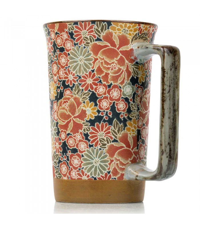 Mug Japonés artesanal perfecto para amenizar tus momentos de té. Un diseño floral y colorido al más puro estilo Nipón.