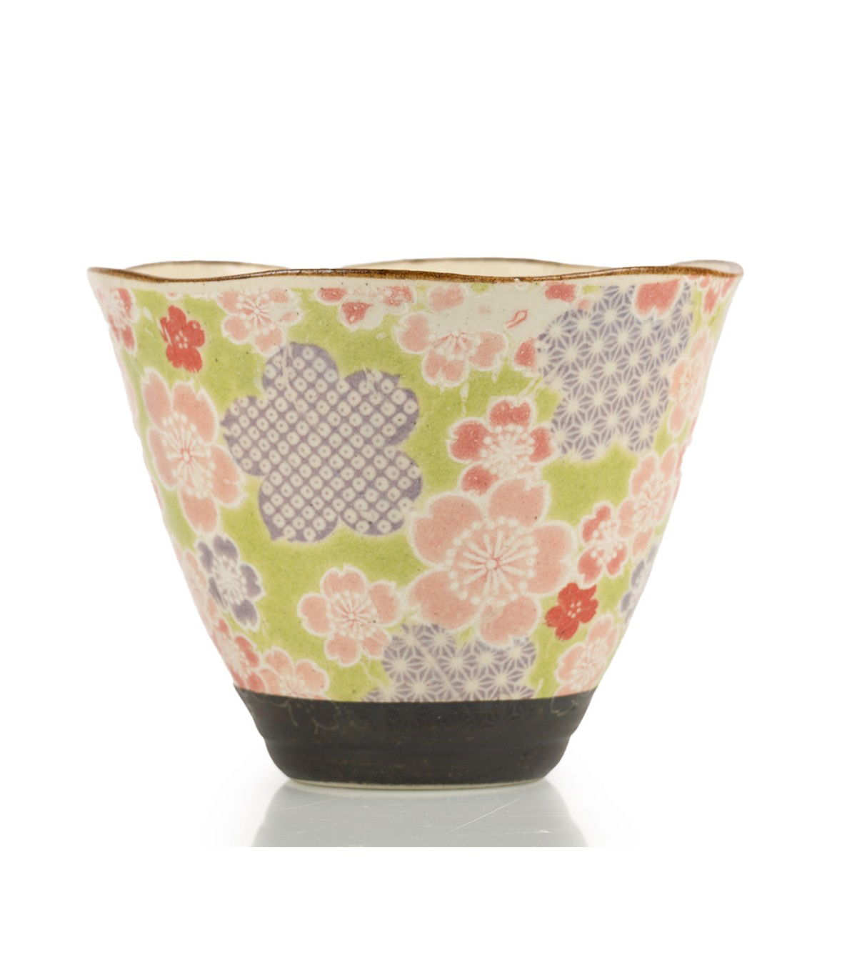 Yuzuki Midori: Un vaso japonés de toanlidad verde con motivos florales y patrones japoneses, diseñado para transformar cada sorbo de té en un viaje sensorial. Es el complemento ideal para cualquier tetera.