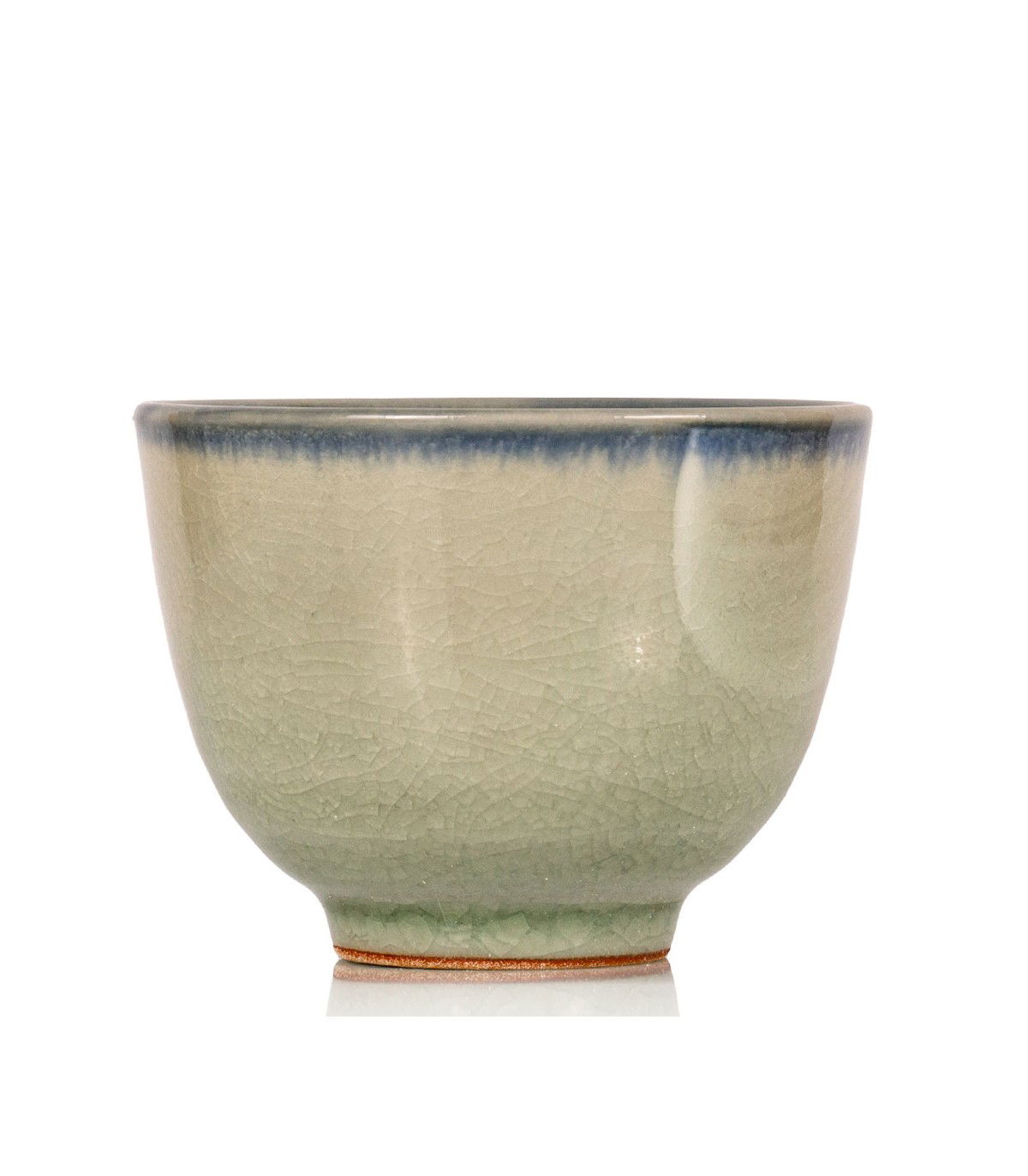 Con una capacidad de 130ml y dimensiones de 8cm de ancho por 6cm de alto, el Yunomi Mifukai "anti-sencha" está elaborado con un acabado celadón que nos recuerda a la nieve suavemente acumulada bajo un cielo invernal despejado. El esmalte craquelado no es meramente decorativo; sirve como un testamento al paso del tiempo, con líneas finamente entrelazadas que son como las huellas que deja la historia en la naturaleza y en el arte. Además, el craquelado puede absorber gradualmente los taninos del té, creando una patina que evoluciona con cada uso, haciendo que cada taza sea única para su dueño.