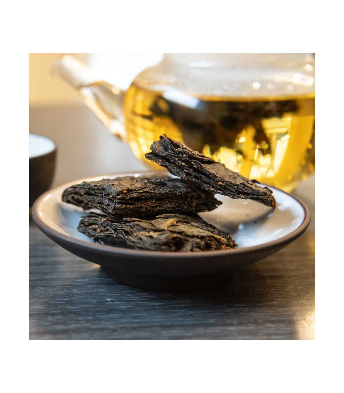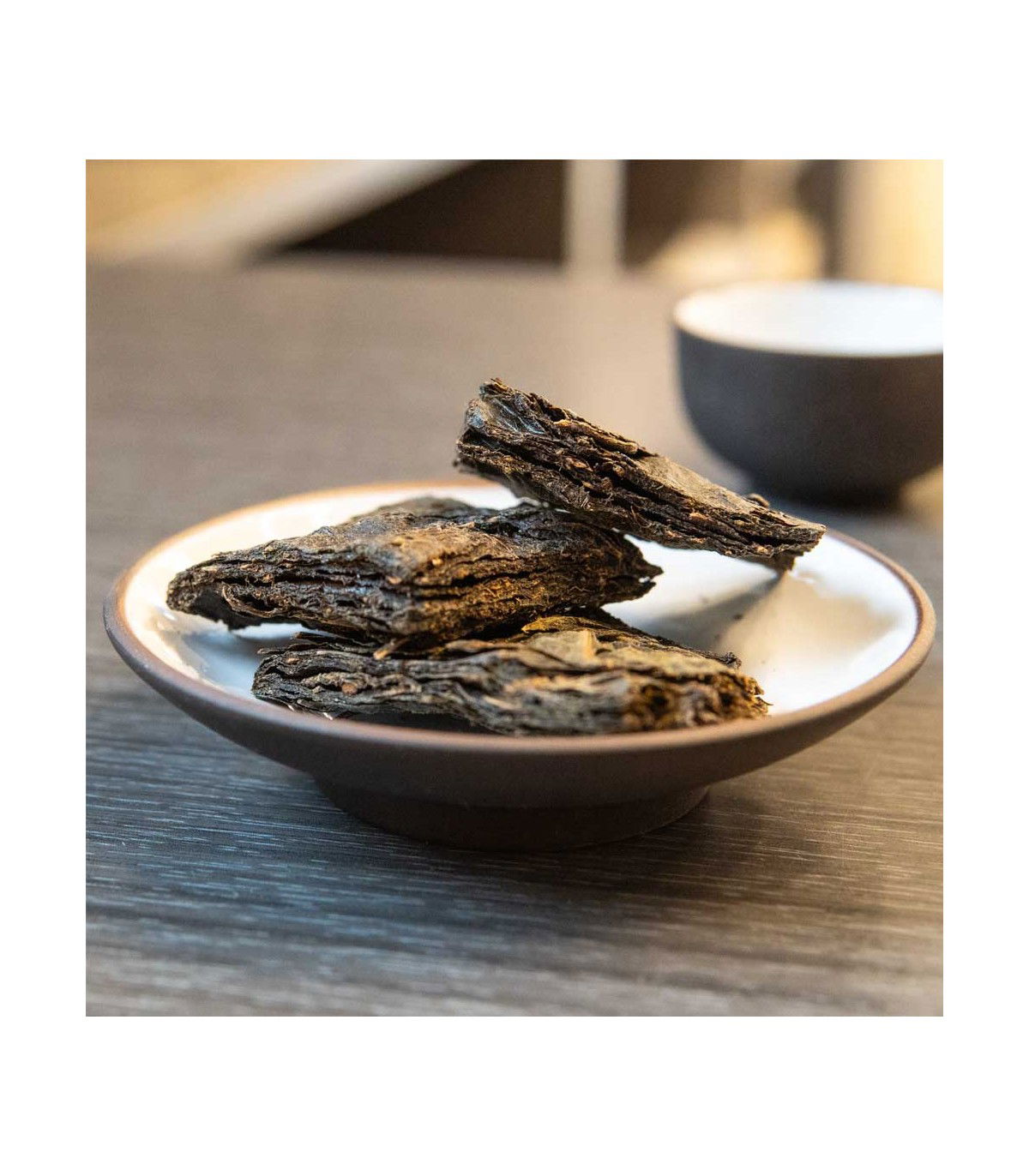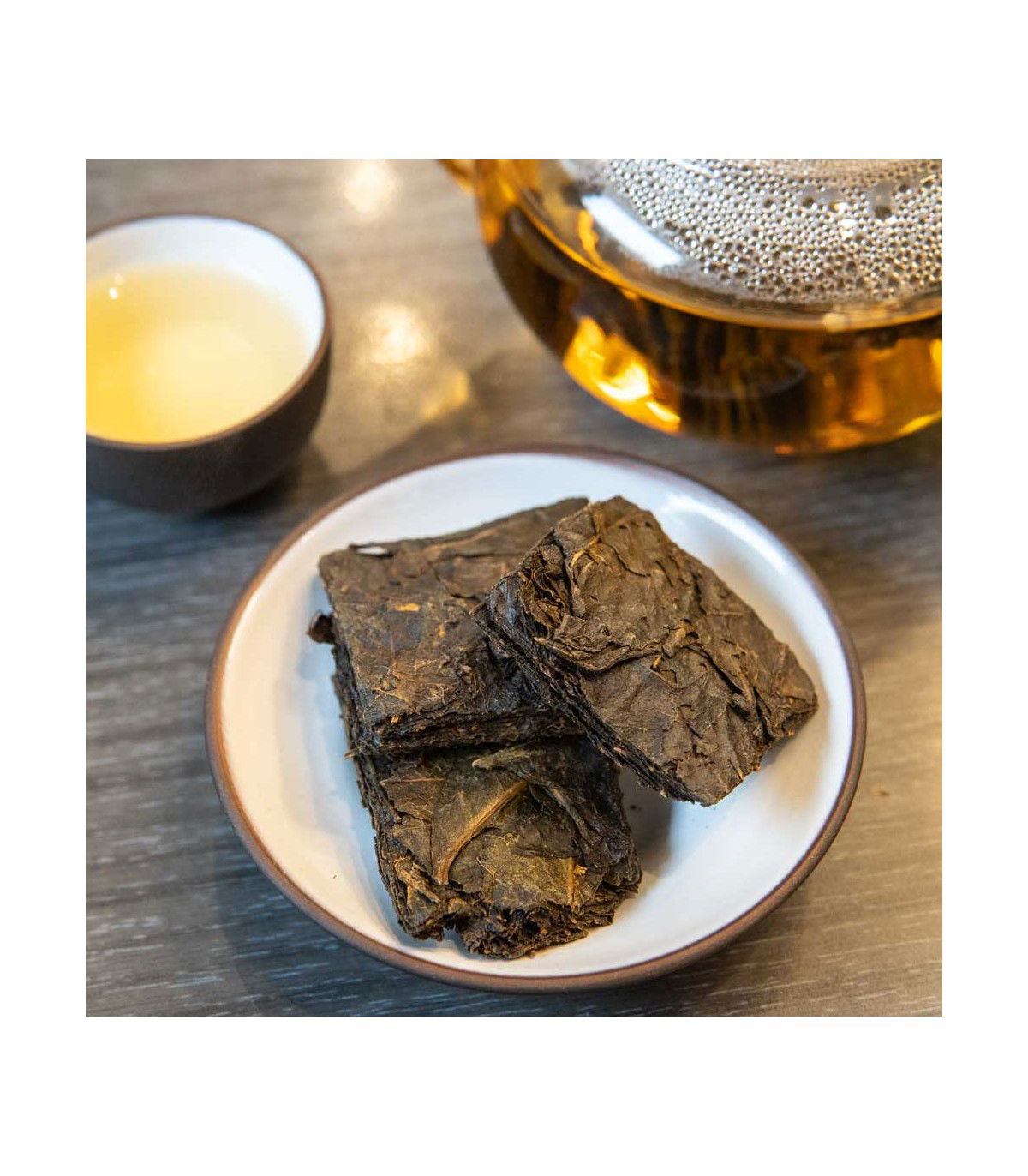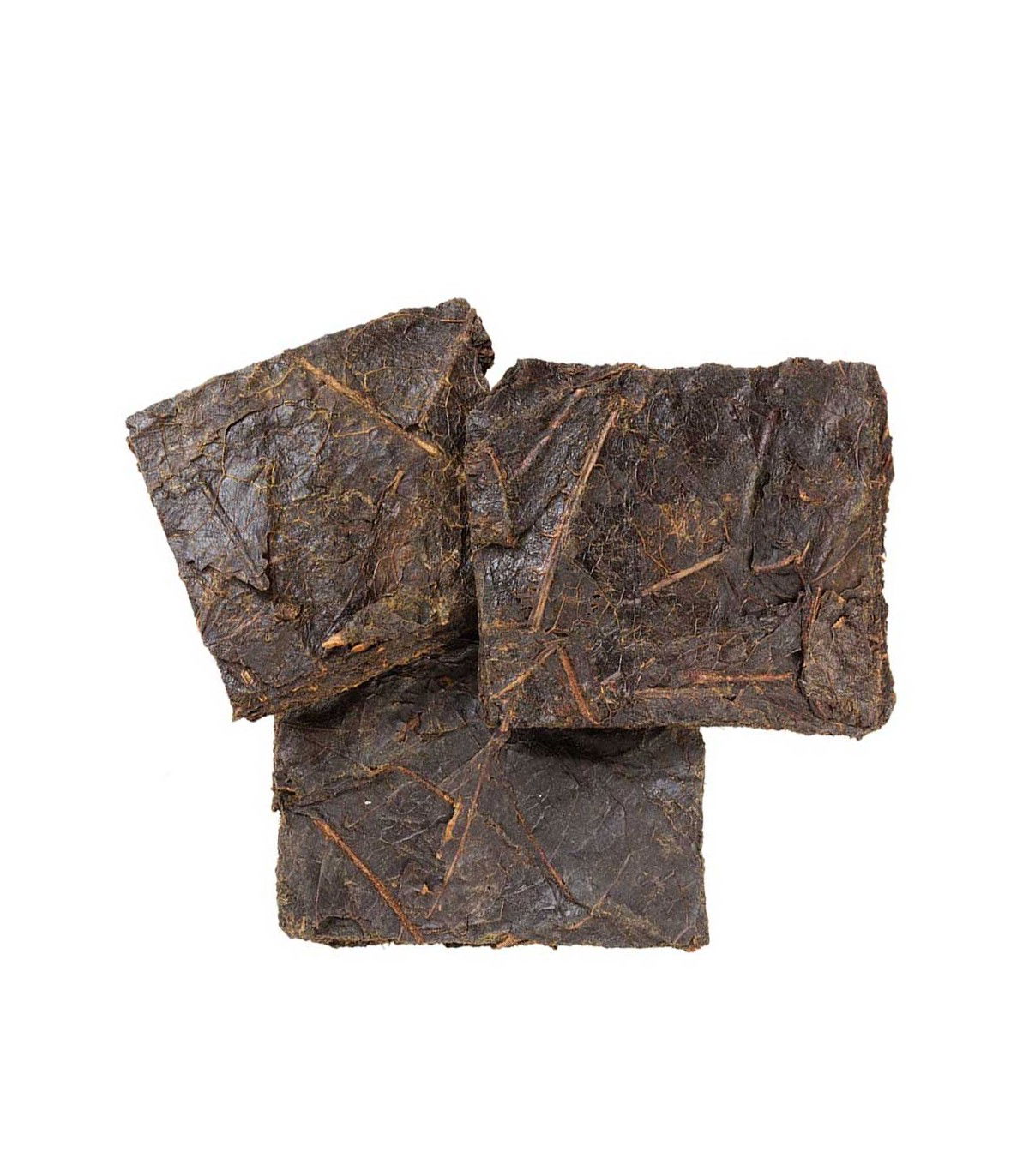 Este té se presenta como su nombre insinúa, en forma de pequeños cuadrados irregulares con diferentes grosores en función de cuan haya sido apilado, puedes partir un trozo separando varias capas si lo vas a preparar al estilo tradicional.
