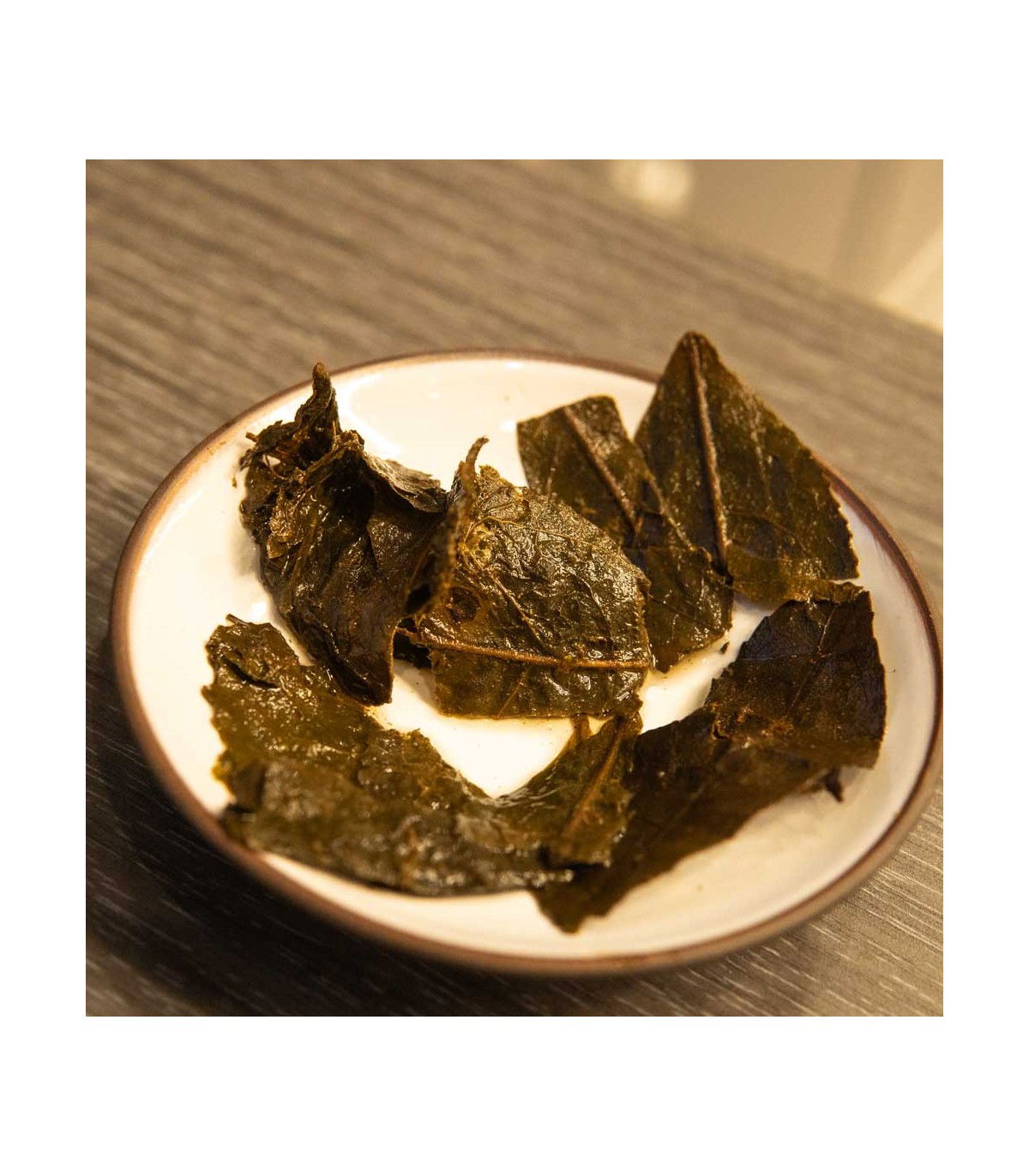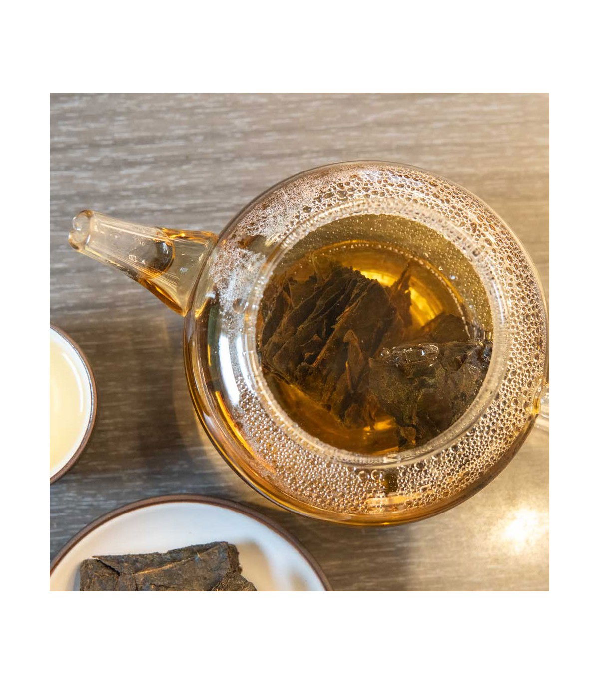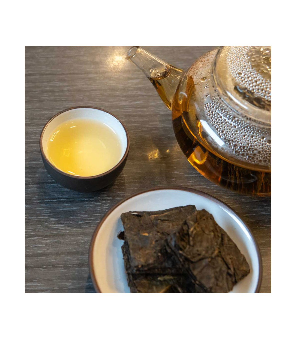 Beber este té, es realmente algo único y excepcional, las hojas de aspecto tosco, con tonos cobrizos, oscuros tirando a negro están apiladas fuertemente, emanan un aroma intenso, diferente a otros tés y muy penetrante. Aromas afrutados, vegetales, marinos, tostados y golosos se dan cita y todo esto, sin tan siquiera poner agua.