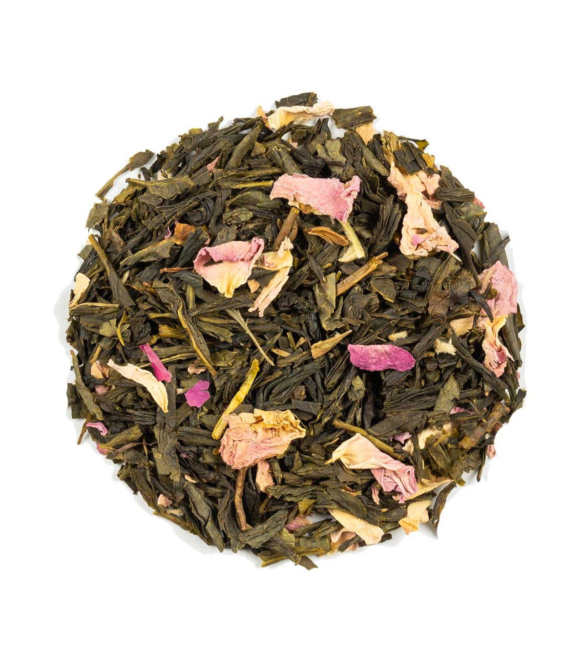 Té Verde Sencha, Aroma de cereza 100% natural, pétalos de rosa .
