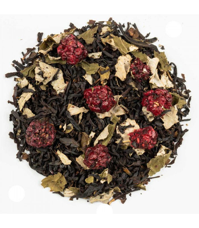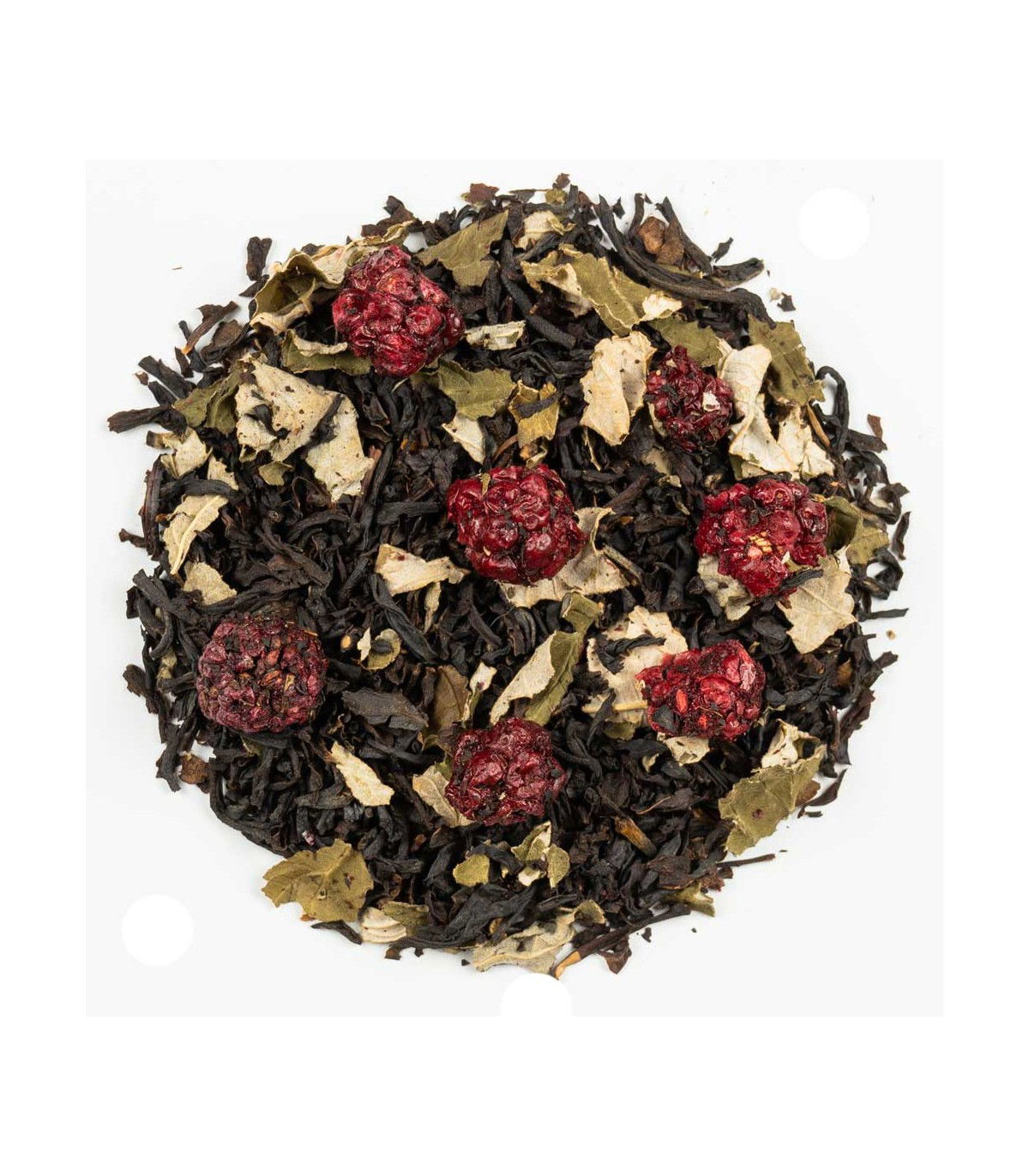 Té Negro de Assam, Moras liofilizadas, Hojas de Frambuesa y aromas naturales.