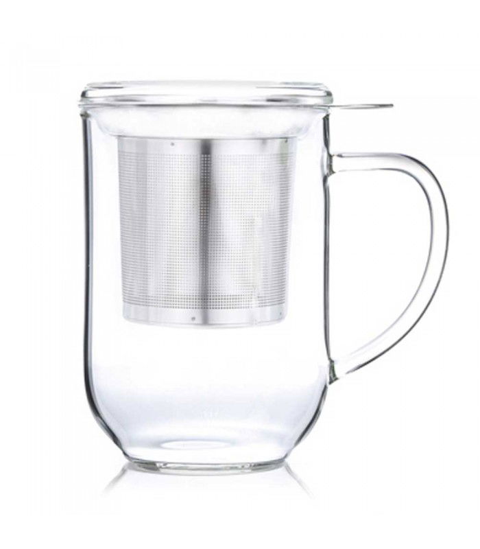 Taza tamaño XL de cristal resistente a las altas temperaturas con filtro de alta calidad. Perfecta para los que toman grandes cantidades de té.