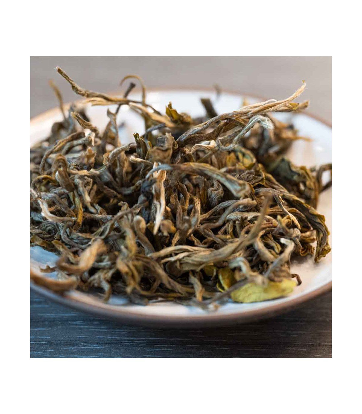 Su origen se remonta al uso del cultivar autóctono “Da Ye” (hoja grande de Menghai), una subvariedad del Camellia sinensis var. assamica que destaca por su riqueza aromática y su capacidad para ofrecer infusiones intensas, complejas y duraderas. Pero lo que convierte a este té en una rareza es su proceso de elaboración único, compartido solo por los verdaderos tés amarillos: una técnica conocida como “menghuang”, o “sofocar el amarillo”.