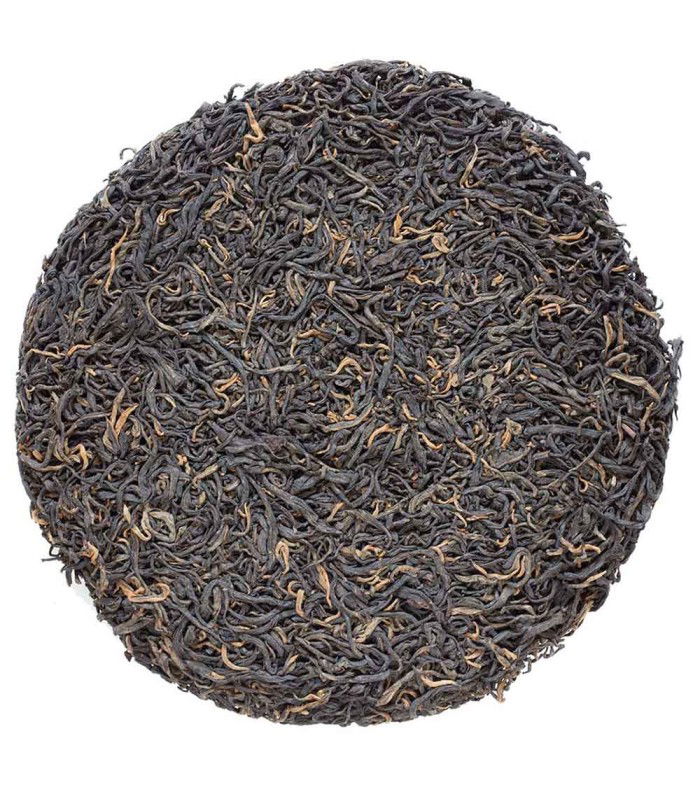 Aunque originariamente fue prensado en tortas de 357 g en el año 2020, hoy puedes disfrutarlo en forma de hebras sueltas, listas para prepararse sin herramientas. Y lo que ofrece es, literalmente, un viaje sensorial: desde el primer sorbo se percibe que no estás ante un té negro convencional. Su perfil recuerda a un sheng pu erh joven, con notas terrosas, madera húmeda y un fondo mineral que aporta estructura sin astringencia.