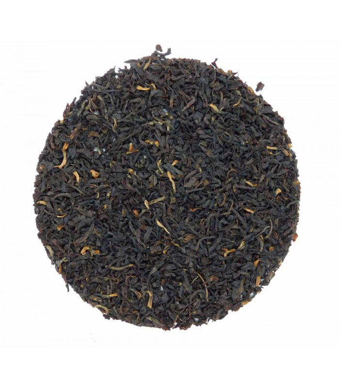 Visualmente, este té es una obra de arte. Sus hojas, un tapiz de marrones oscuros entrelazados con brotes dorados, prometen una infusión de un rojo cobrizo brillante. Al prepararlo, su aroma a frutas cítricas y especias te envuelve, transportándote a un mundo donde cada detalle cuenta.