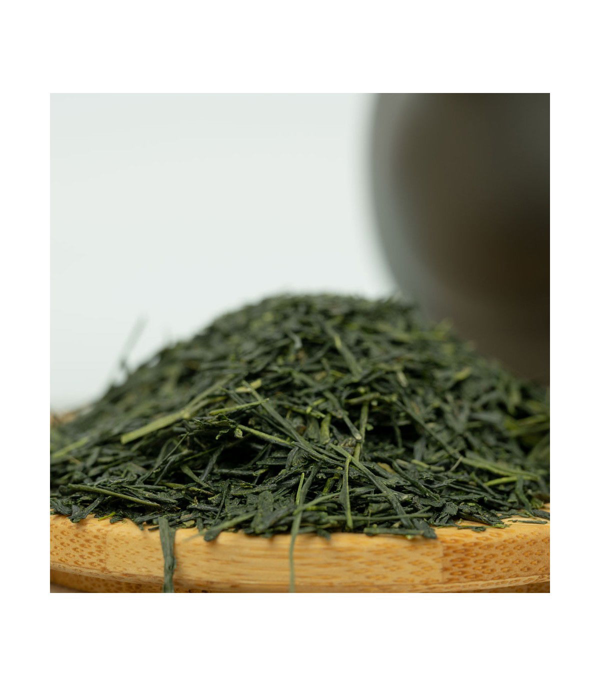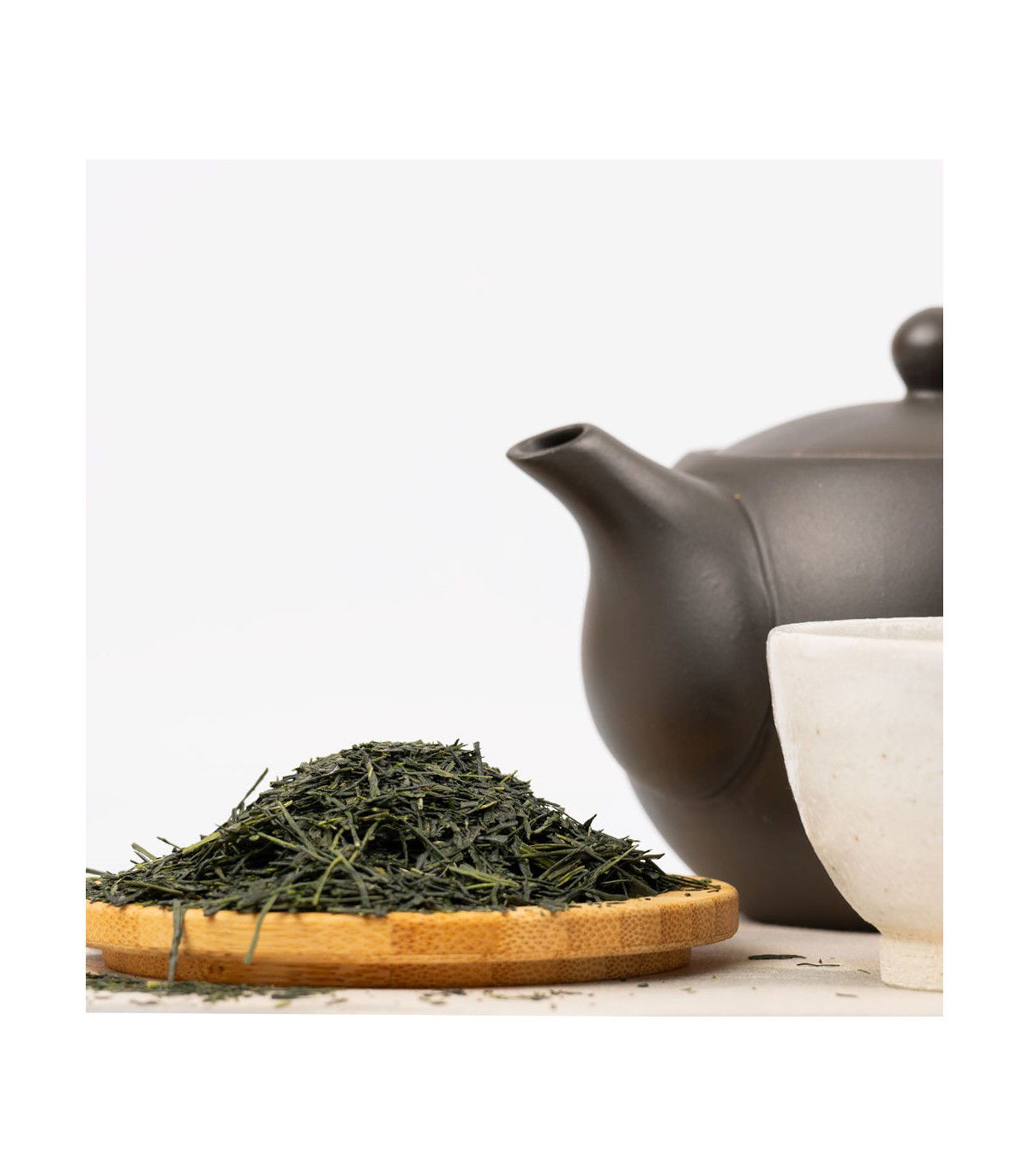 El Gyokuro, conocido como el “rocío de jade”, es uno de los tés más refinados de Japón. Para su elaboración, los arbustos se sombrean durante unos 30-40 días antes de la cosecha, un proceso que reduce la fotosíntesis y aumenta la concentración de aminoácidos, en especial la L-teanina, responsable del característico sabor umami.
