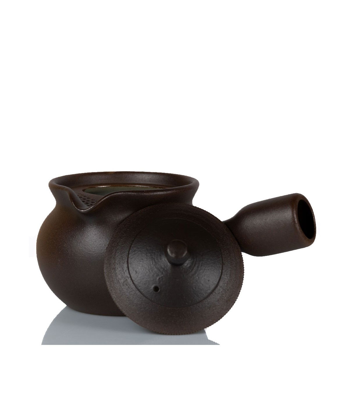 Cada una de las perforaciones del filtro de arcilla ha sido realizada a mano por uno de los pocos maestros artesanos que dominan esta técnica en Japón. De hecho, solo tres artesanos continúan fabricando estos tamices a mano, lo que hace de esta tetera una auténtica obra de arte. Este tipo de filtro es ideal para tés de hojas más grandes y menos procesadas, como gyokuro, shincha, hojicha o oolong. Sin embargo, en el caso de tés más intensamente al vapor (fukamushi cha), las hojas finas pueden obstruir los pequeños orificios del filtro.
