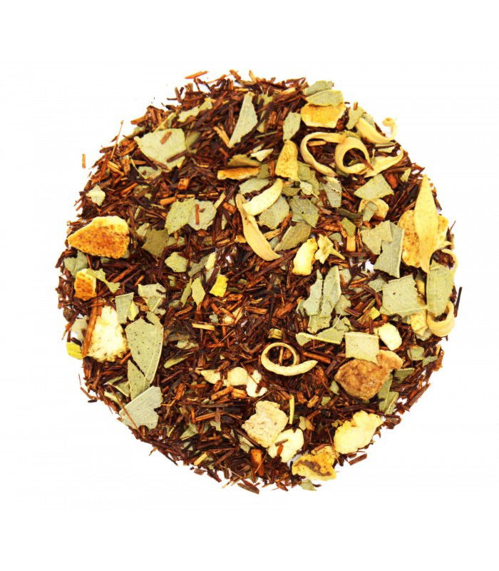 - Rooibos , Hojas de eucalipto, cáscara de naranja, aroma natural, flor de azahar