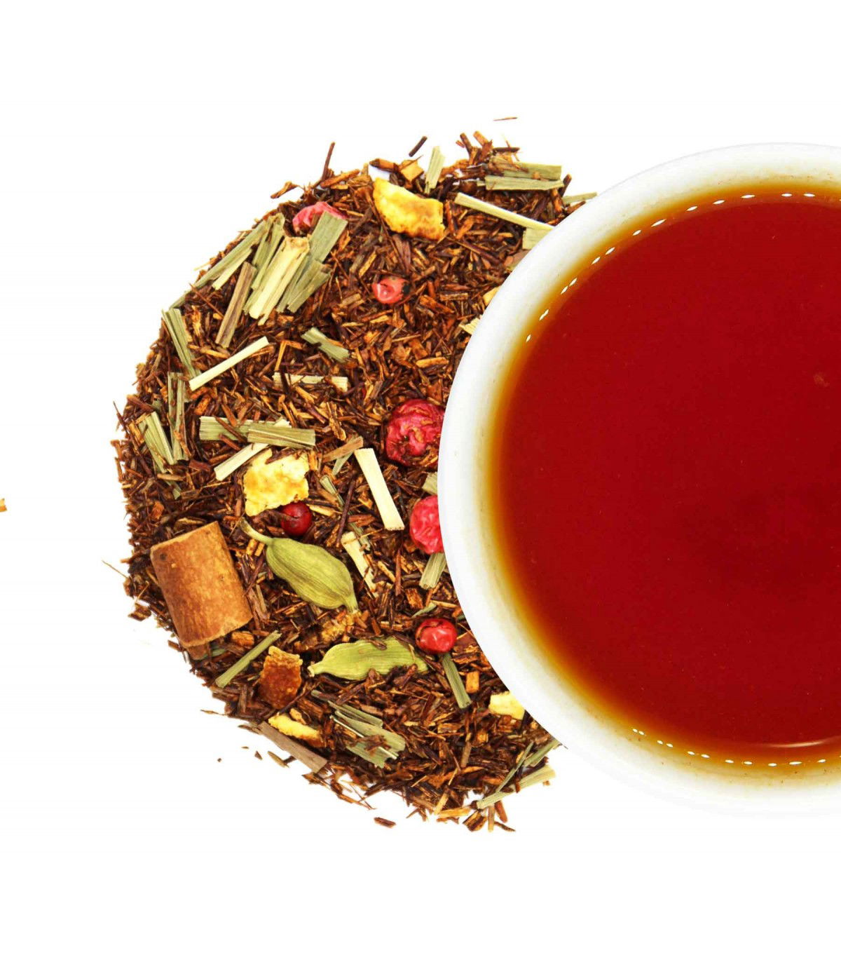 El más selecto Rooibos de Sudáfrica combinado con las especias más famosas del mundo y redondeado con el toque fresco de la hierba de limón.